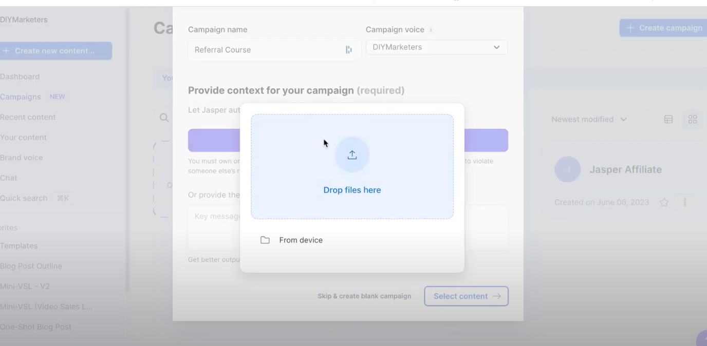 Now, let’s explore how you can create your own marketing campaign using Jasper. Suppose you want to promote your new